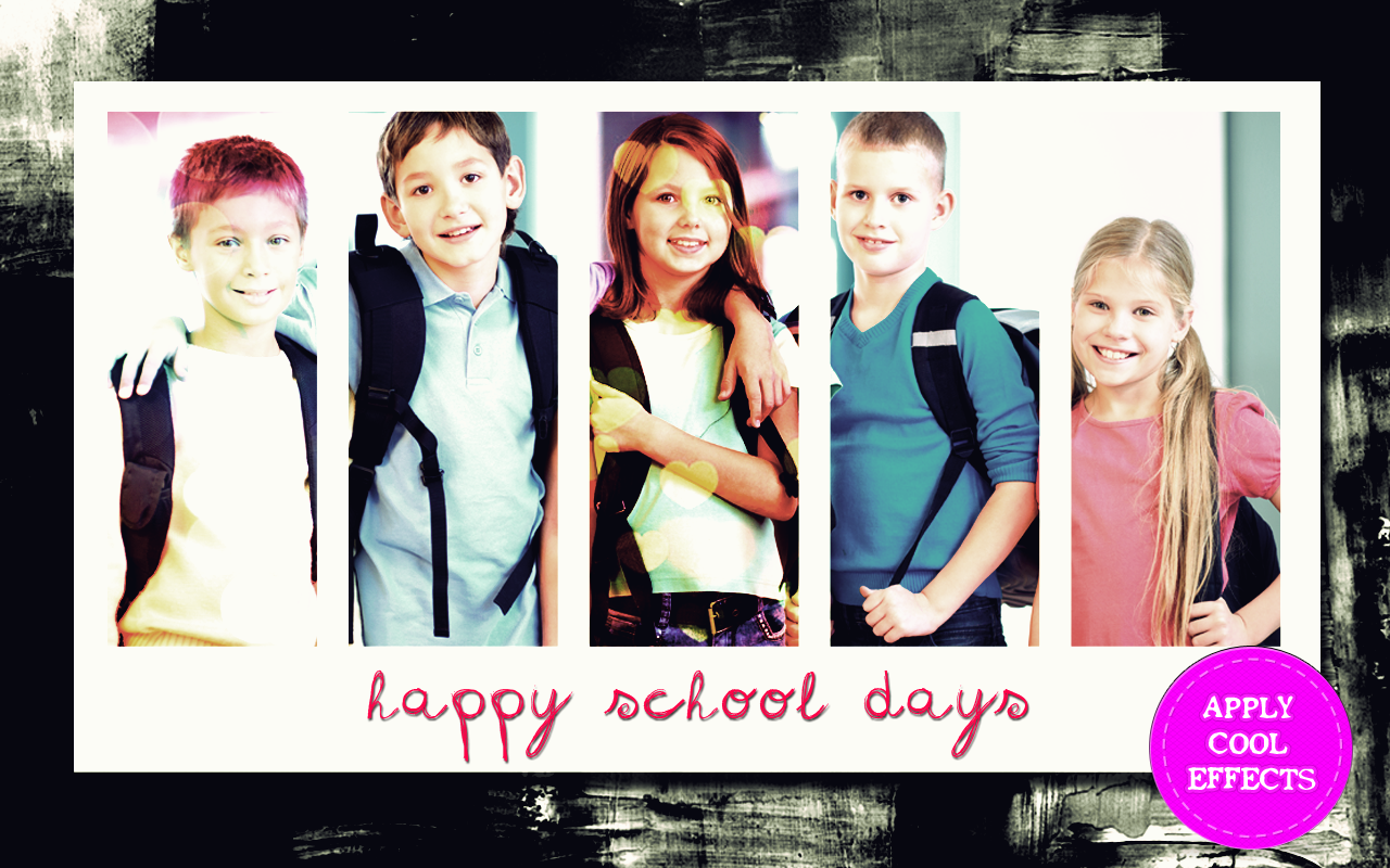 You can give effects like Grunge, Space, Bokeh. Image effects and more. You can add Captions to your images and you can change the color of the bored as per your choice.