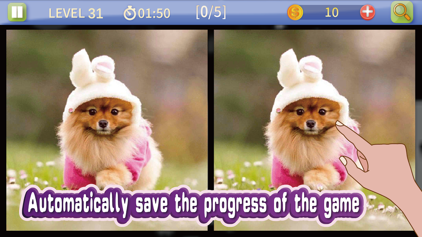 • Salva automaticamente l'avanzamento del gioco, comprese tutte le differenze trovate, così potrai giocare quando vuoi e fermarti quando vuoi