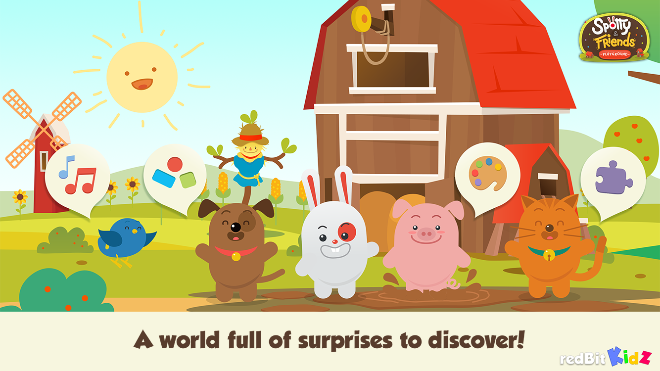 - 4 minigiochi da giocare insieme a Spotty e ai suoi amici (colori, forme, puzzle, musica)