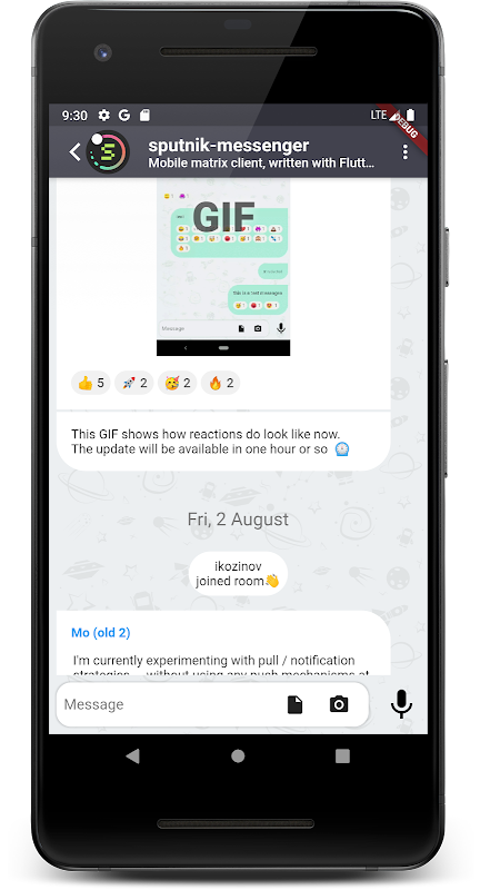 Sputnik Messenger is an instant messaging app, following the matrix.org client-server spec.