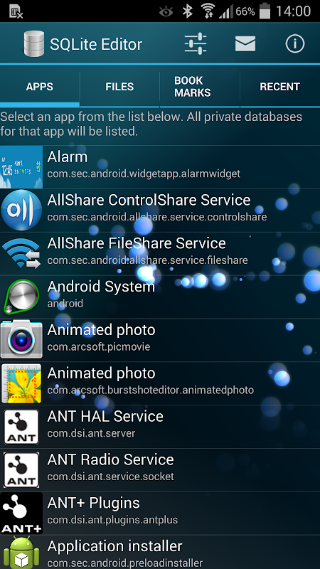 Consente di modificare e cancellare record in qualsiasi database SQLite sul tuo cellulare. Per gli utenti root, elenca tutte le applicazioni installate che hanno database interni locali. È quindi possibile selezionare un'applicazione e modificare qualsiasi dei suoi database.