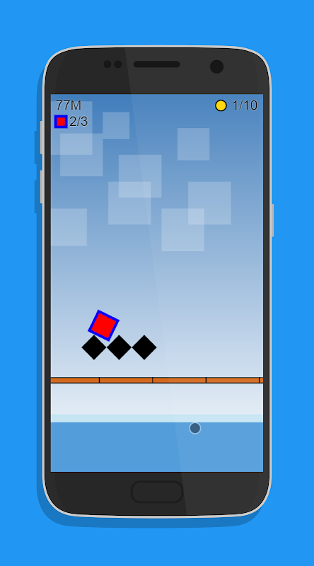 Square Dash it's a geometric dash adventure game based on jumps over obstacles and stay alive for as long as possible, so how many meters you will record? to help you with that catch 10 coins to get a power whether a life or shield rocket.
