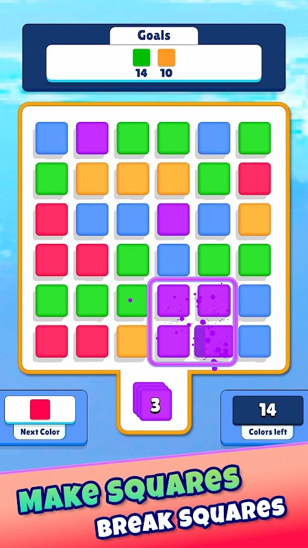 Square Match apporta una nuova svolta al classico genere dei puzzle. Come giocatore, il tuo obiettivo è abbinare strategicamente quattro colori in una formazione quadrata per rompere i cubi e completare vari obiettivi. Ogni livello del gioco è progettato in modo unico con obiettivi e sfide diversi, rendendo il tuo viaggio nel gioco emozionante e imprevedibile.