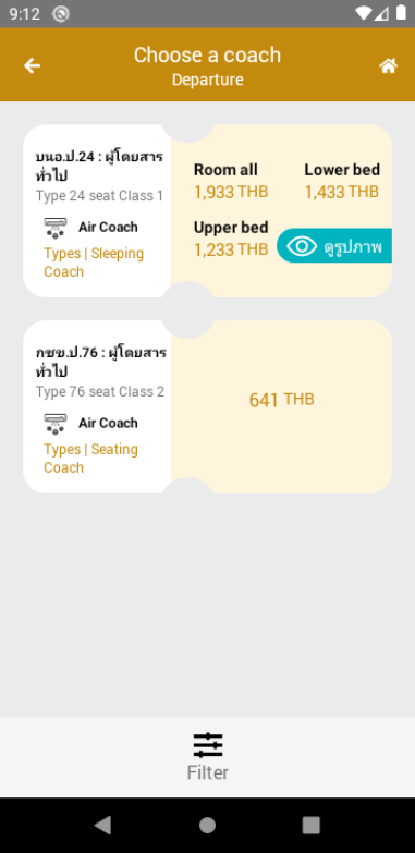 - เลือกขบวนรถ ตู้โดยสาร และ เลือกสำรองที่นั่ง ด้วยตนเอง