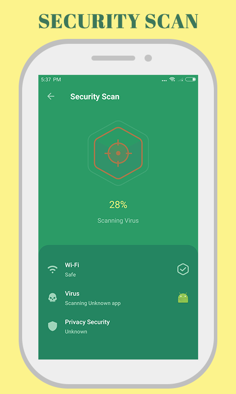 Rilevatore di virus e pulizia. Proteggi il tuo telefono da virus e malware. Ricorda di scansionare il telefono regolarmente per stare al sicuro