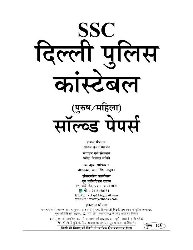 YCT EXPERT TEAM LAUNCHES ONE OF THE BEST BOOK NAMED AS SSC DELHI POLICE CONSTABLE (Computer Base Exam) Solved Papers.