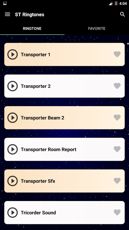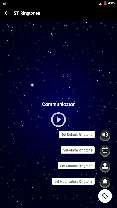 Questa app per suonerie include suoni come: Canzone tematica, Suoni Lcars, Black Alert, Bridge, Communicator, Computer acceso,