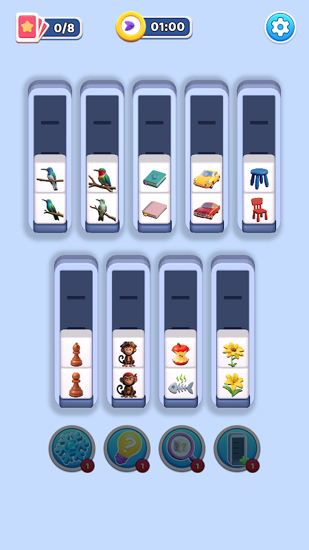 sposta e impila oggetti per collegare le stesse categorie e svuotare tutte le colonne.