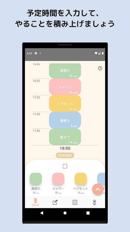"Stack ToDo" allows you to register in advance "things to do" and "time to spend on them.