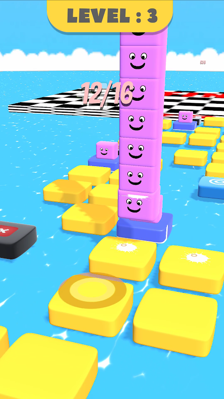 Uno stile unico di puzzle game agile a blocchi 3D, che controlla la direzione del salto in avanti del cubo facendolo scorrere a destra e a sinistra. Per evitare i segni della croce sul terreno, impila cubi simili per superare il livello.
