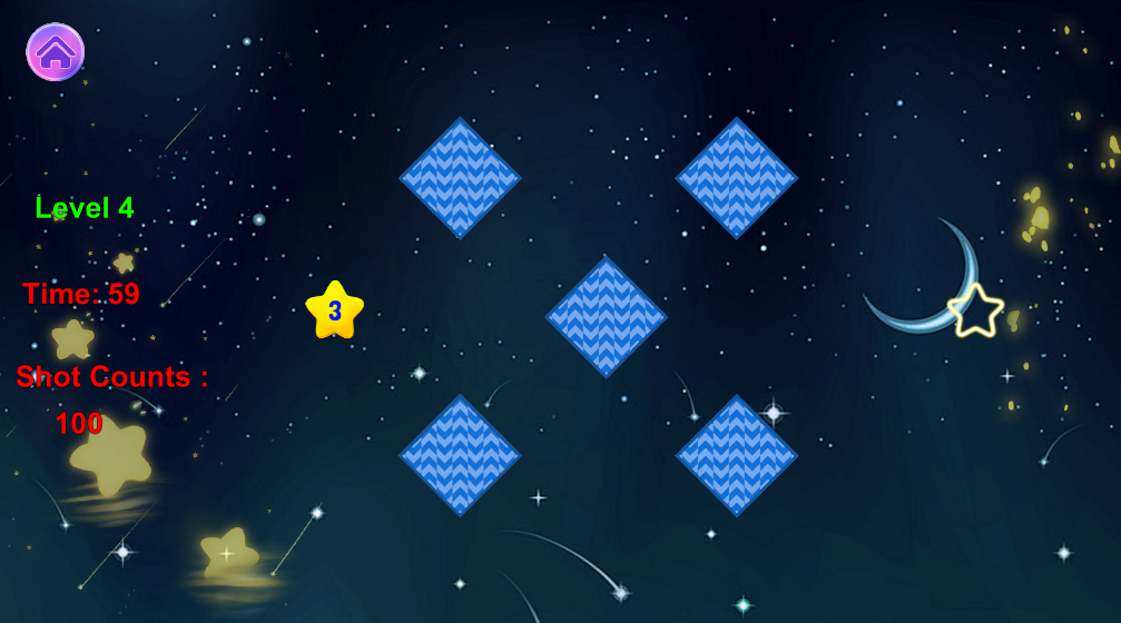Fare clic e far scorrere la stella gialla. Il numero sulla stella è il numero di collisioni. Ogni collisione dopo il lancio viene conteggiata una volta. Se raggiungi il bordo della stella entro il numero di collisioni, la sfida ha successo.