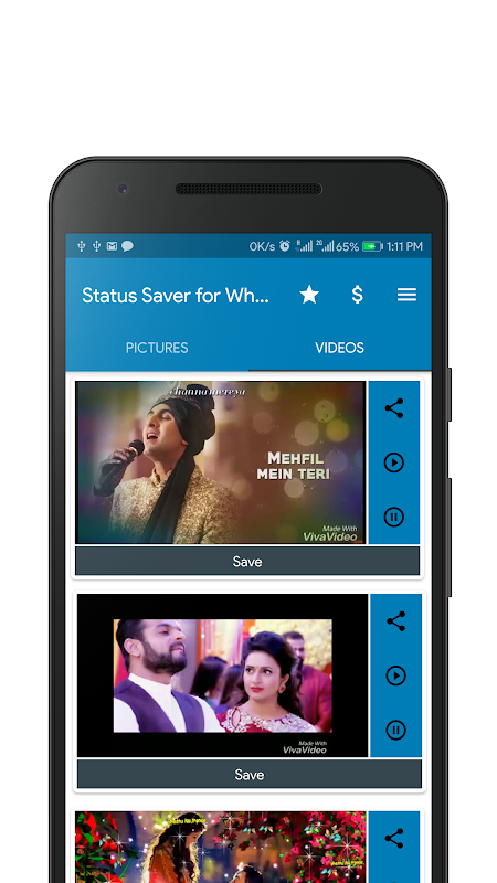 7- Can save video status to your phone.