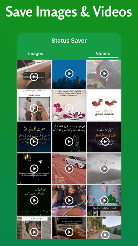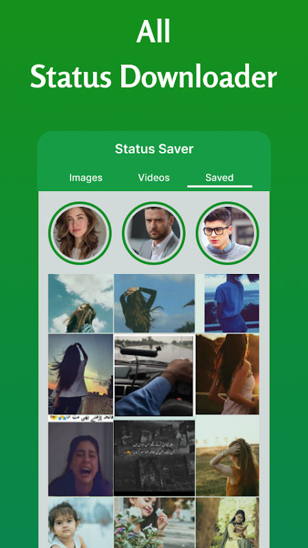 Scarica immagini e video con Salva storia per WA. Con il downloader di stato video e il salva stato puoi scaricare e goderti video e immagini in qualsiasi momento e puoi anche scaricare video e foto dagli stati e ripubblicarli direttamente con salva storia per WA.