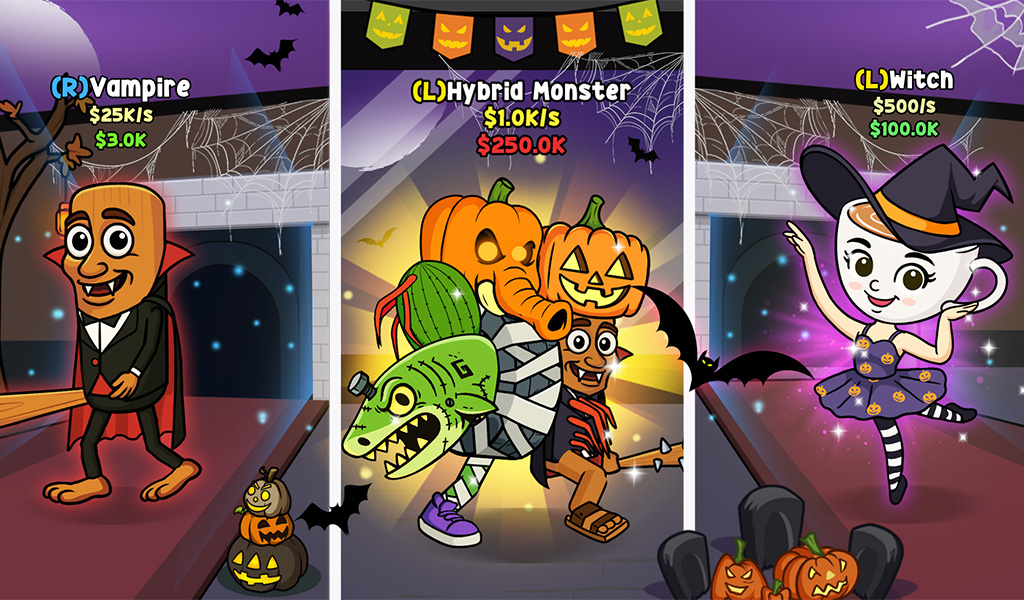 👹 Acquista mostri dal nastro trasportatore rosso al centro.