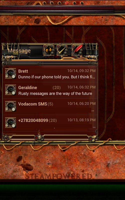 From your home screen, with GO Launcher Ex installed - Long Press an empty area on your home screen - from the pop-up menu tap GoWidget - slide left or right to "Message" - tap it - tap the Paint icon on the right - Select "Steampunk" - slide across to choose one of the many options and sizes.