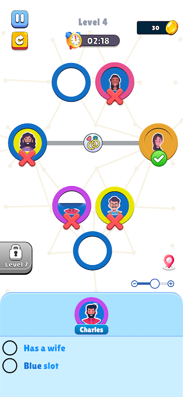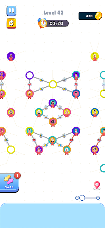 Grafica brillante e giocosa che crea un'esperienza puzzle coinvolgente. Un'esperienza rompicapo avvincente che mette alla prova le tue abilità di abbinamento e logica. Vari livelli con condizioni uniche ed enigmi da risolvere.