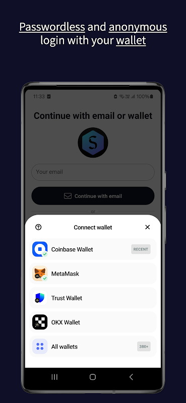 • Accesso al portafoglio: crea il tuo account Sticknet in modo anonimo e senza password