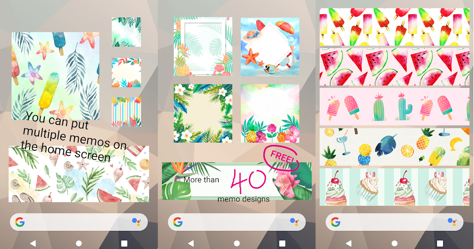 3. Tocca e tieni premuto il widget "Memo Summer". Vedrai le immagini di ogni schermata Home.