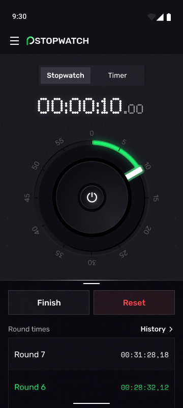 Avvia e ferma il cronometro premendo il pulsante al centro dello schermo. Per registrare un round, premi il pulsante "Round".