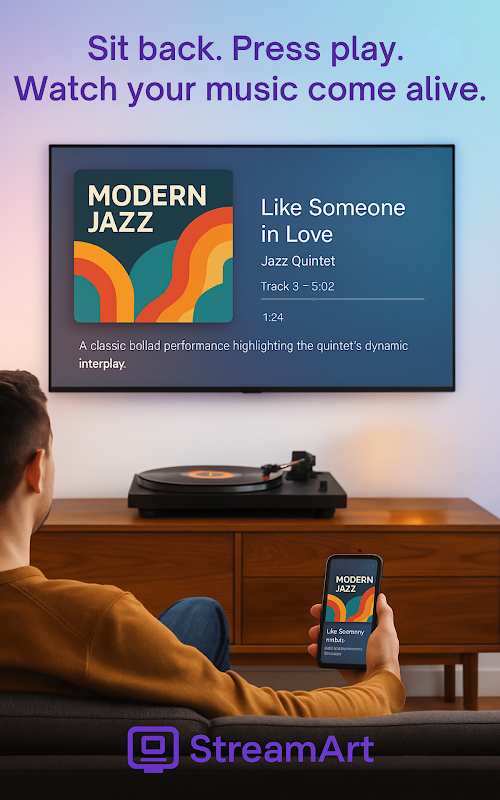 Riscopri la bellezza della musica analogica con StreamArt TV, il compagno perfetto per gli amanti della musica che amano vinili, cassette o CD, ma sentono la mancanza dell'esperienza visiva delle moderne app di streaming.