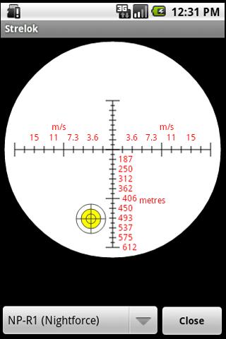 Inoltre, è possibile selezionare reticolo dalla lista e vedere il vento e distanza correzioni sul reticolo senza manopole. È possibile inviare via e-mail l'immagine del reticolo con un residuo e tavolo balistico.