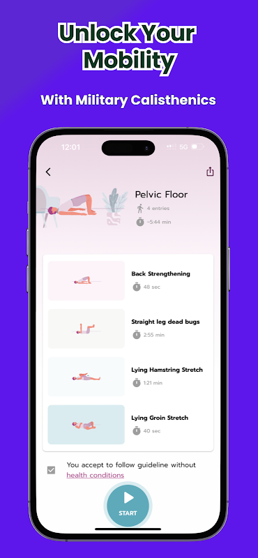 Che tu stia allenando ginnastica calistenica, sollevamento pesi, corsa o semplicemente desideri che il tuo corpo si senta pronto ogni giorno, riceverai esercizi di mobilità mirati che supportano una forma migliore e prestazioni più elevate. Sessioni guidate, progressioni chiare e monitoraggio dei progressi ti aiutano a mantenere la costanza, perché la costanza è la nostra missione.