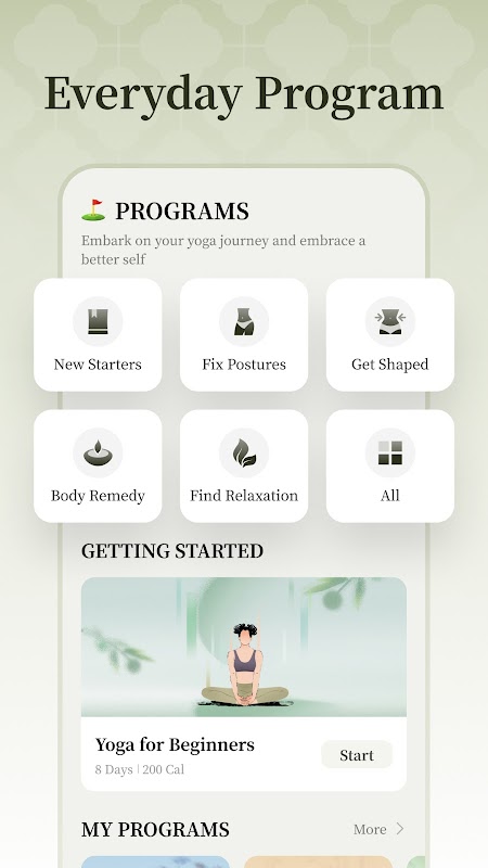 Programma quotidiano: con cinque obiettivi di fitness, ciascuno accompagnato da una selezione di programmi di esercizi su misura, puoi partecipare con un solo clic. Che tu stia mirando a una migliore postura, modellamento del corpo, rilassamento, flessibilità o altro, abbiamo la soluzione per te!