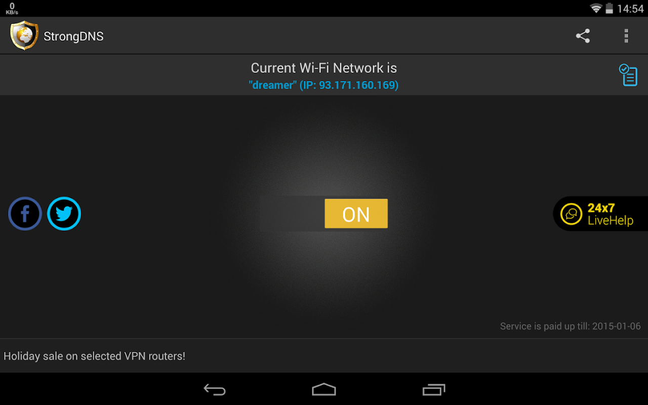 – Automatically sets up the StrongDNS service on your Android device with ability to restore the connection settings back.