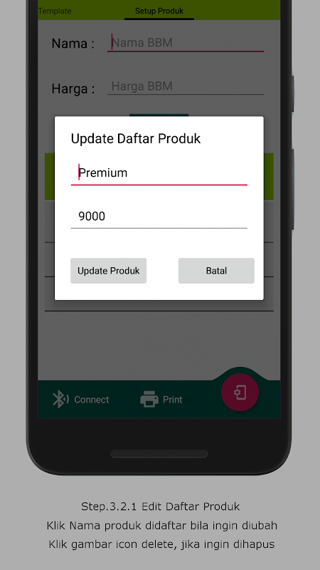 Applicazione per la stampa di Pertamini utilizzando una stampante bluetooth