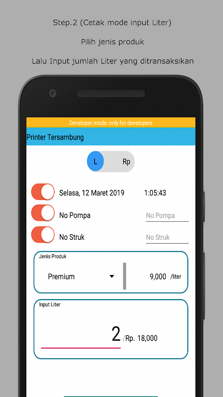 3. Mini formato ricevuta Pertamina (Bluetooth)