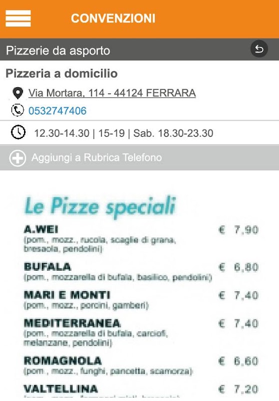 - Cucina e pizza a domicilio in 3 click con listini consultabili dall'app