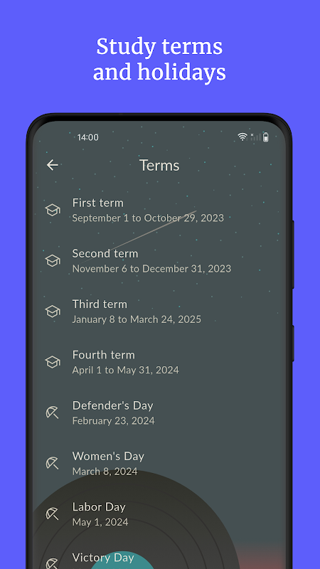 L'app aiuta gli studenti a tenere traccia del loro orario scolastico, dei compiti e dei voti. Gestisci la tua vita scolastica con facilità!