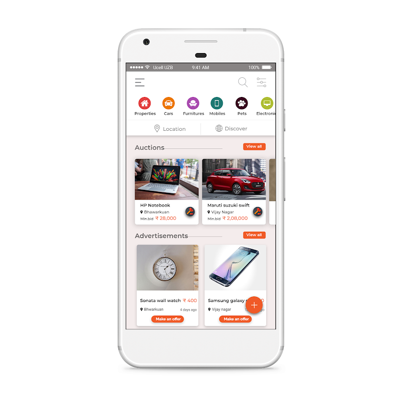 Questa applicazione per l'acquisto e la vendita di articoli vecchi / usati, questa app fornisce due metodi per vendere o acquistare un prodotto, o un utente può acquistare / vendere direttamente facendo semplicemente clic sull'annuncio e fare un secondo in base al budget, e l'altro metodo è per fare offerte sul particolare prodotto che è contrassegnato dal proprietario, qui il proprietario imposterà un prezzo minimo e gli acquirenti possono fare un'offerta di importo superiore a quello minimo e fare un'offerta di conseguenza.