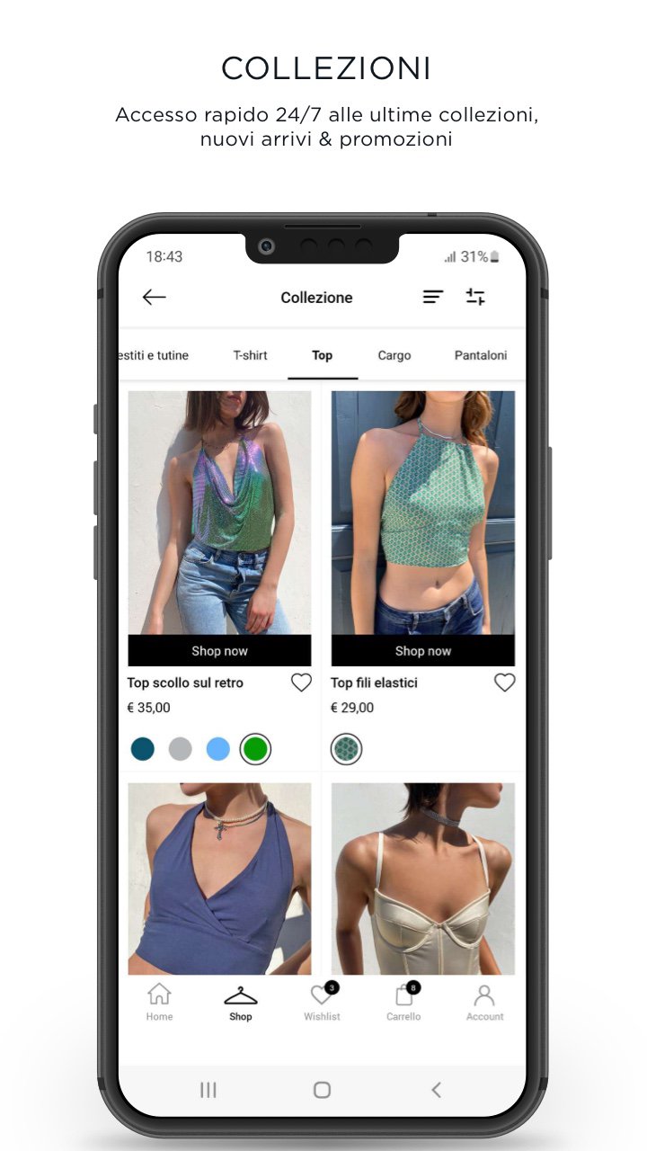 - Wishlist dei tuoi preferiti: salva i pezzi che ami e acquistali quando vuoi.