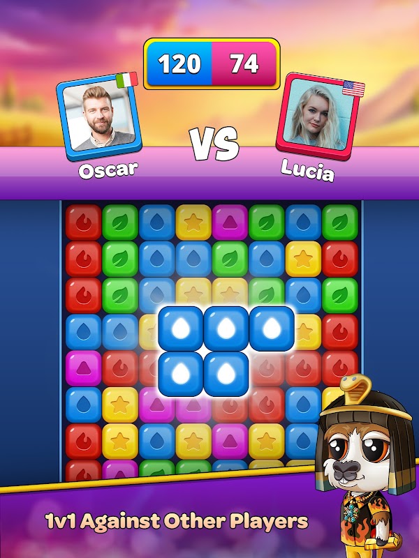 Sfida giocatori da tutto il mondo in partite PvP in tempo reale e mostra le tue abilità. Super Blast è un gioco di abbinamento multiplayer online basato sulle abilità che ti farà dimenticare gli altri giochi di abbinamento e puzzle che hai giocato in passato. Fai le mosse migliori contro i tuoi avversari e ottieni i punteggi più alti possibili. Dimostra a tutti di essere il maestro degli abbinamenti ultimativo utilizzando le tue abilità e strategie.