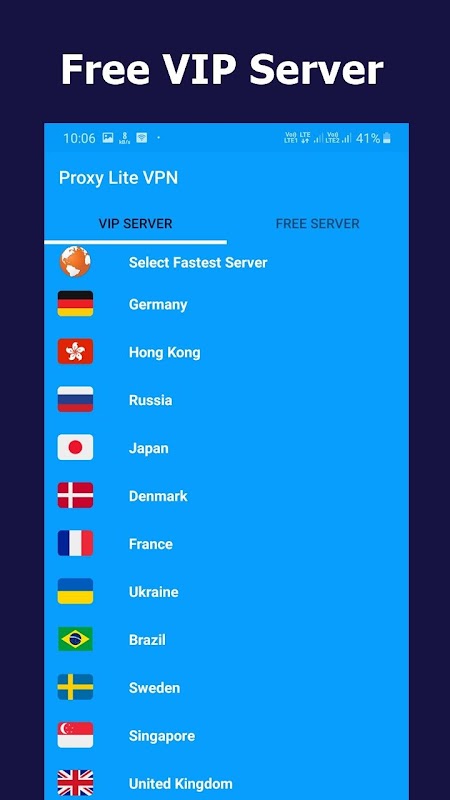 Con la super capacità e la super durata puoi chiamare Lite VPN un super vpn come un supereroe ad alta velocità. Il suo veloce modulo di richiamo vpn proxy ti assicura la super velocità di internet nelle reti private attraverso i nostri server vpn sicuri con velocità turbo in posizione reale.