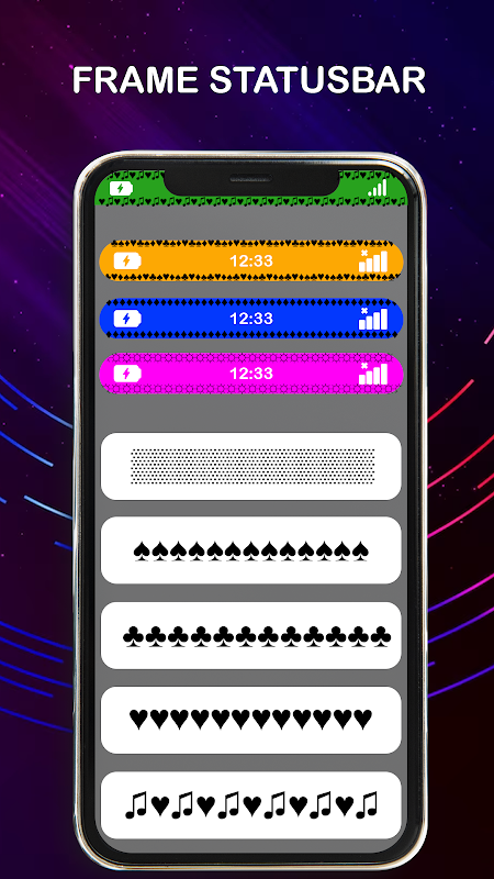 Ottieni un nuovo look sullo schermo del tuo telefono con la barra di stato personalizzata. Cambia lo sfondo della barra di stato con la tua scelta di colore. Imposta anche il design del modello dal nostro modello ben progettato e aggiungi colore al modello per la tua barra di stato unica.