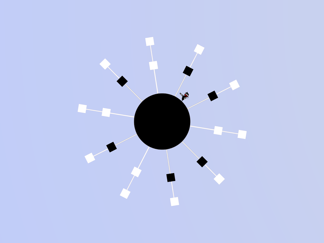 Click to jump, and don't touch the black square on the circle. Thousands levels to beat! It's a fun physics based arcade game, recommended both for children and adults! The challenge increases with each level. New style classic free arcade game.