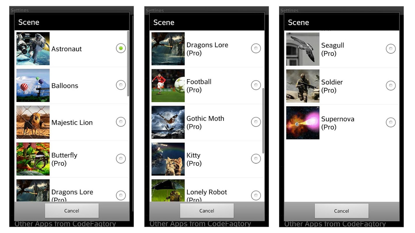 A superb multi-layered parallax live wallpaper with beautiful hand-crafted, high-resolution scenes for you to choose from.