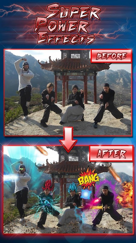 Effetti Super Poteri ⚡ Immagini di Supereroi è la migliore super poteri modifica foto e una migliore foto condivisione applicazioni. Scarica “immagini divertenti di supereroi” e get super poteri fx gratis. Usa questo super poteri effetti foto a modifica immagini e foto, aggiungi testo a immagini e film d'azione effetti per foto e crea belli super poteri foto. Pubblica un super poteri immagini come stato o storia sui social media. Aggiungi tag hash e tag geografico per ottenere più follower. Condividi con loro la divertenti super poteri fotocamera applicazioni, in modo che tutti possano godere programma foto gratis con “foto saiyan”. Nessun altro “super potere effetti foto” può offrirti di più filtri foto e “foto divertenti di supereroi” gratis.