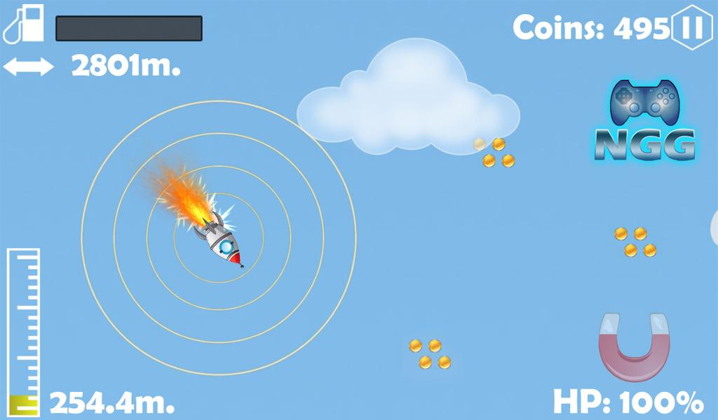 Управляйте ракетой и собирайте топливо что бы пролететь как можно дальше.