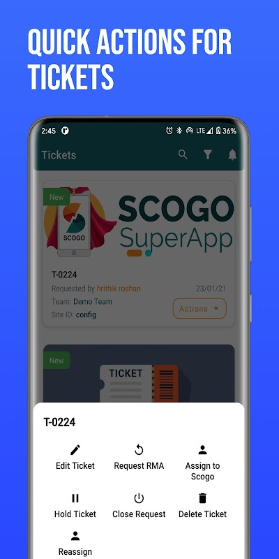 L'app Scogo fornisce servizi sul campo on-demand in tutta l'India con una copertura di oltre 20.000 codici pin. I nostri clienti prenotano i servizi sul campo tramite l'app mobile e, in base al nostro algoritmo di instradamento, il ticket di assistenza viene indirizzato al tecnico dell'assistenza iperlocale. Dopo aver accettato il ticket da parte dei tecnici dell'assistenza, i clienti possono tracciare il proprio percorso di localizzazione fino all'indirizzo di destinazione desiderato, dove è richiesto il servizio. Il tecnico dell'assistenza utilizza il sistema di chat nativo in tempo reale dell'app Scogo per garantire aggiornamenti regolari e inviare immagini e video utilizzati per valutare la qualità del servizio. Una volta completato il ticket, il tecnico dell'assistenza viene pagato tramite il portafoglio di pagamento dell'app Scogo.