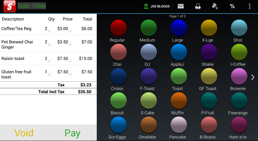 Se l'aggiunta di elementi automaticamente con un lettore di codice a barre o bluetooth scanner incorporato della fotocamera, prenotazione ordine di conti dei clienti o la creazione di Punti fedeltà è semplice e facile con SuperFastPoS. Bollette Split consentono semplici tipi di pagamento separati su un ordine.