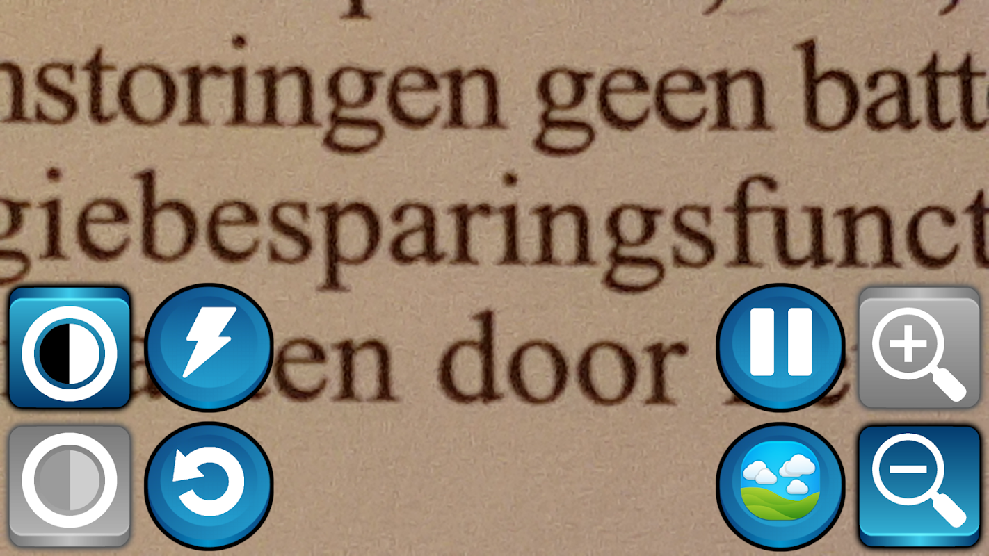 L'applicazione permette di controllare facilmente lo zoom, il contrasto e la modalità di colore dell'immagine. Sono supportati tre modelli di colore naturali e sette sintetici. È inoltre possibile utilizzare la vigilanza in ambienti bui, attivando il flash del vostro smartphone.