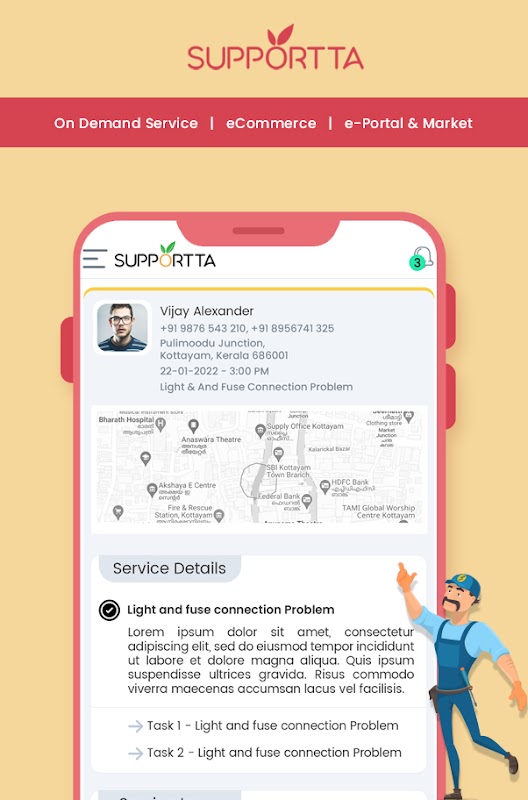 L'app funge da app del fornitore di servizi per la casa su richiesta e da app di e-commerce