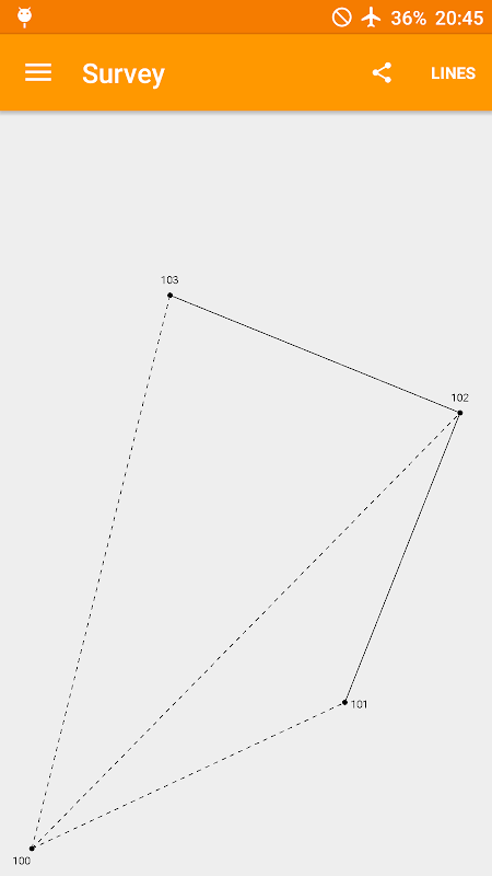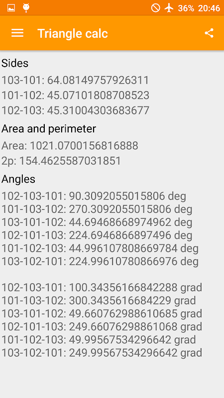 - Calcola lati, area, perimetro, angoli ed azimuth di in triangolo (dato da tre punti aggiunti precedentemente)