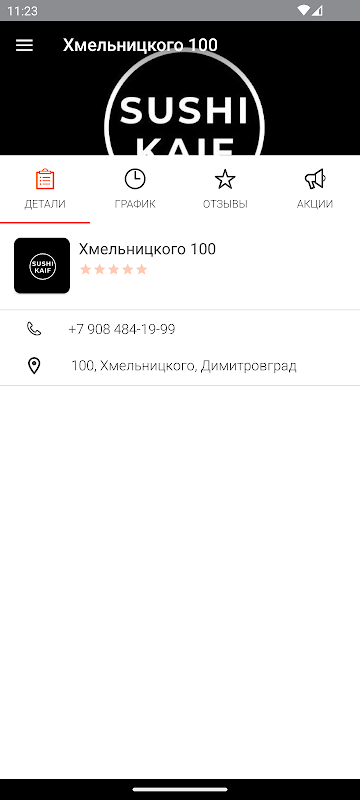 Nell'applicazione Sushi Kaif puoi organizzare la consegna di sushi e panini in modo facile e semplice