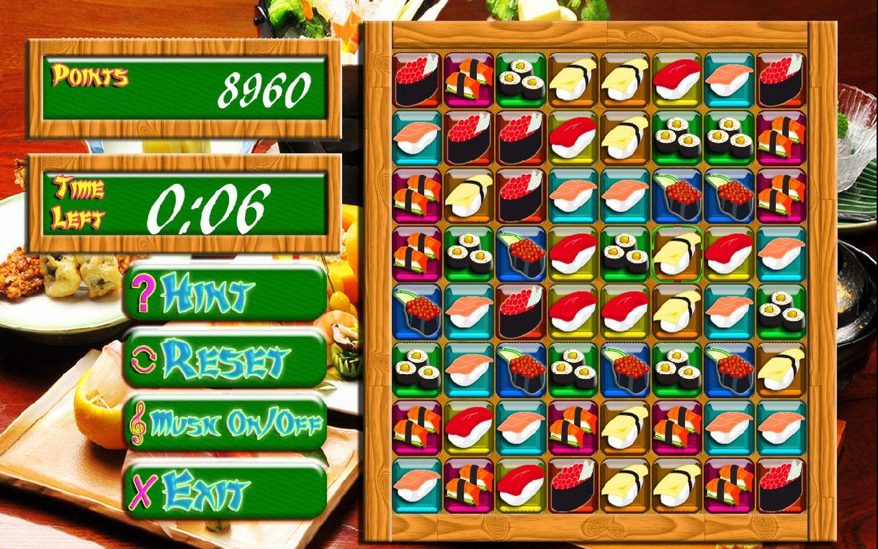 Come into the Japanese kitchen and play a match 3 game with delicious sushi.