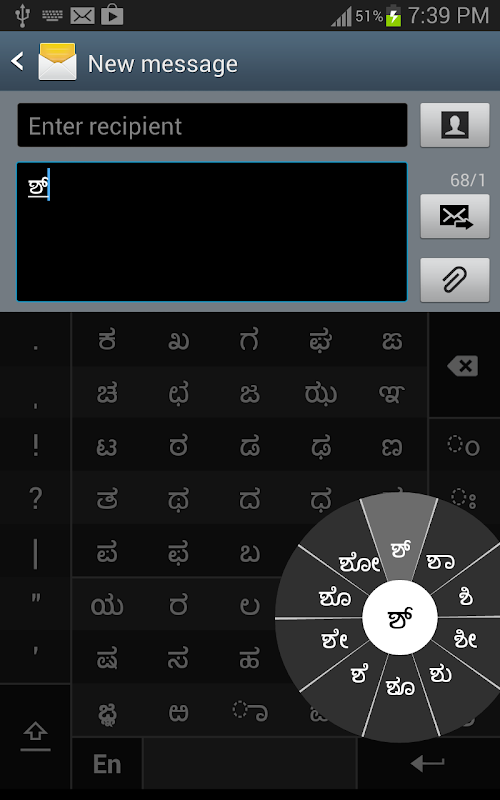 In Kannada, abbiamo spesso bisogno di digitare una combinazione di un consonante ( ಧ ) ed un Matra ( ೊ ) come ಧ + ೊ = ಧೊ . Quando si tocca una consonante, un chakra con la combinazione di consonanti e 10 matras frequenti si apre ( ಧಾ, ಧಿ, ಧೀ, ಧು, ಧೂ, ಧೆ, ಧೇ, ಧೊ, ಧೋ, ಧ್ ). Il chakra dà un'anteprima delle possibili combinazioni di caratteri. Per selezionare una combinazione, si fa scorrere lo stilo o il dito verso di esso.
