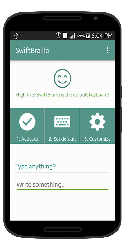 Swift Braille è una tastiera virtuale personalizzata per non vedenti e ipovedenti che consente loro di digitare utilizzando il linguaggio Braille nei dispositivi intelligenti Android con touch screen, collegando insieme i punti Braille utilizzando almeno un dito per connettere o toccare i punti Braille!